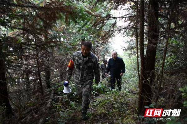 桂东县南风坳候鸟保护站的专职护鸟员们正在巡查。
